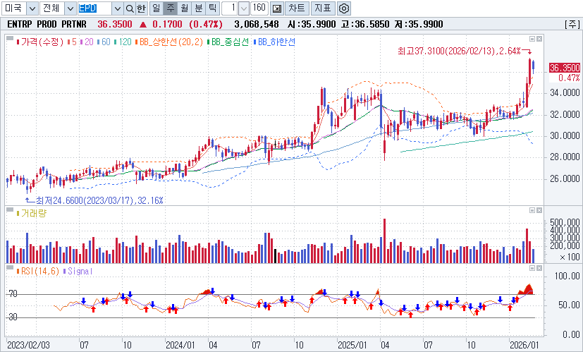 - 목표가 도달 및 밸류에이션: 현재 주가($36.35)가 평균 목표주가($36.72)에 근접해 있어 단기적인 가격 재평가(Re-rating) 여력은 제한적일 수 있습니다.